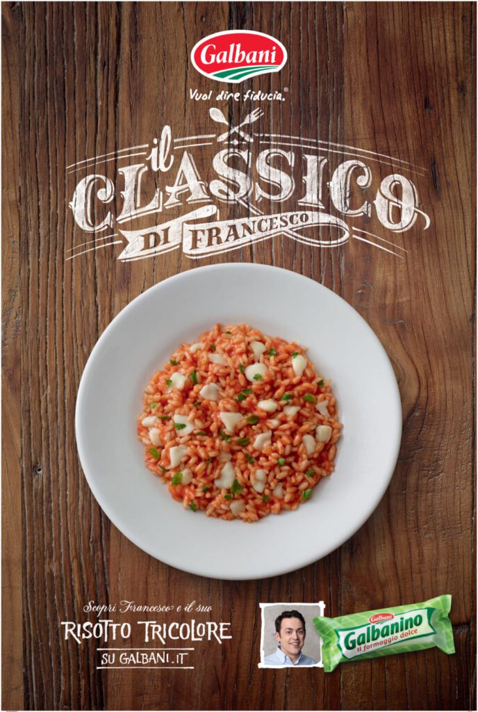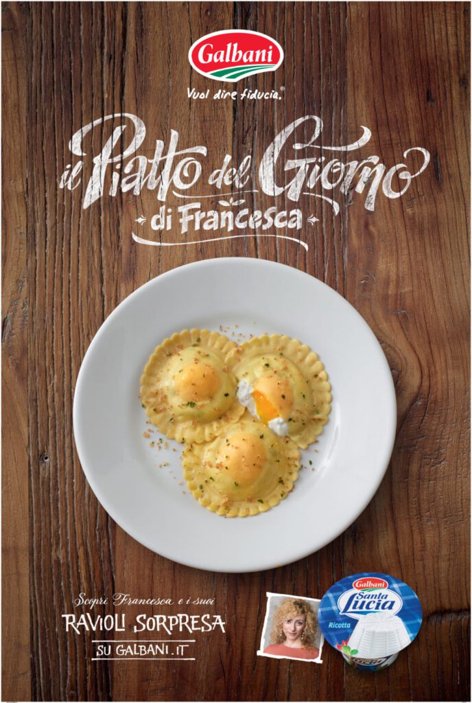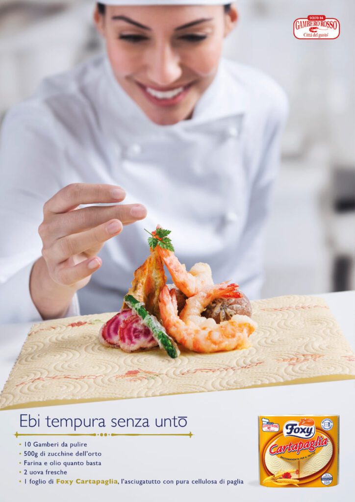 She has created advertising work for companies such as Barilla, Rana, Birra Moretti, Olio Carli, Bauli, Bindi Dessert, Findus, Emile Henry, Salvatore Ferragamo, Venini, Bormioli, De Padova, Parmigiano Reggiano, Muller, Illy, Galbani, Grana Padano, Negroni, Biffi, Coop.
